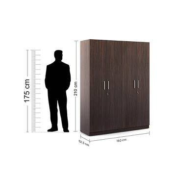 Rupantor Engineered Wood 4 Door Wardrobe Without Mirror in Walnut Finish
